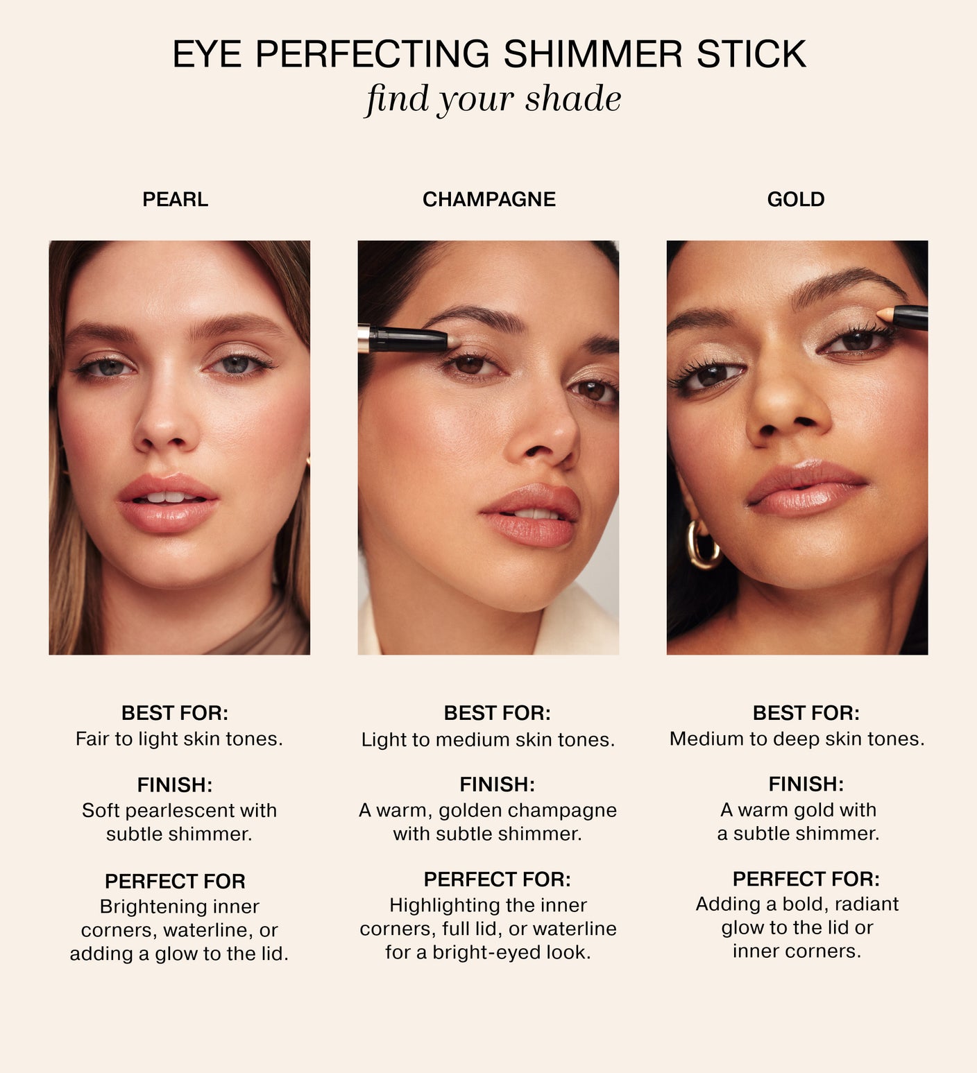 Formulated for sensitive skin, the Eye Perfecting Shimmer Stick applies gently, making it suitable for sensitive eyes or contact lens wearers looking for a safe, radiant look.