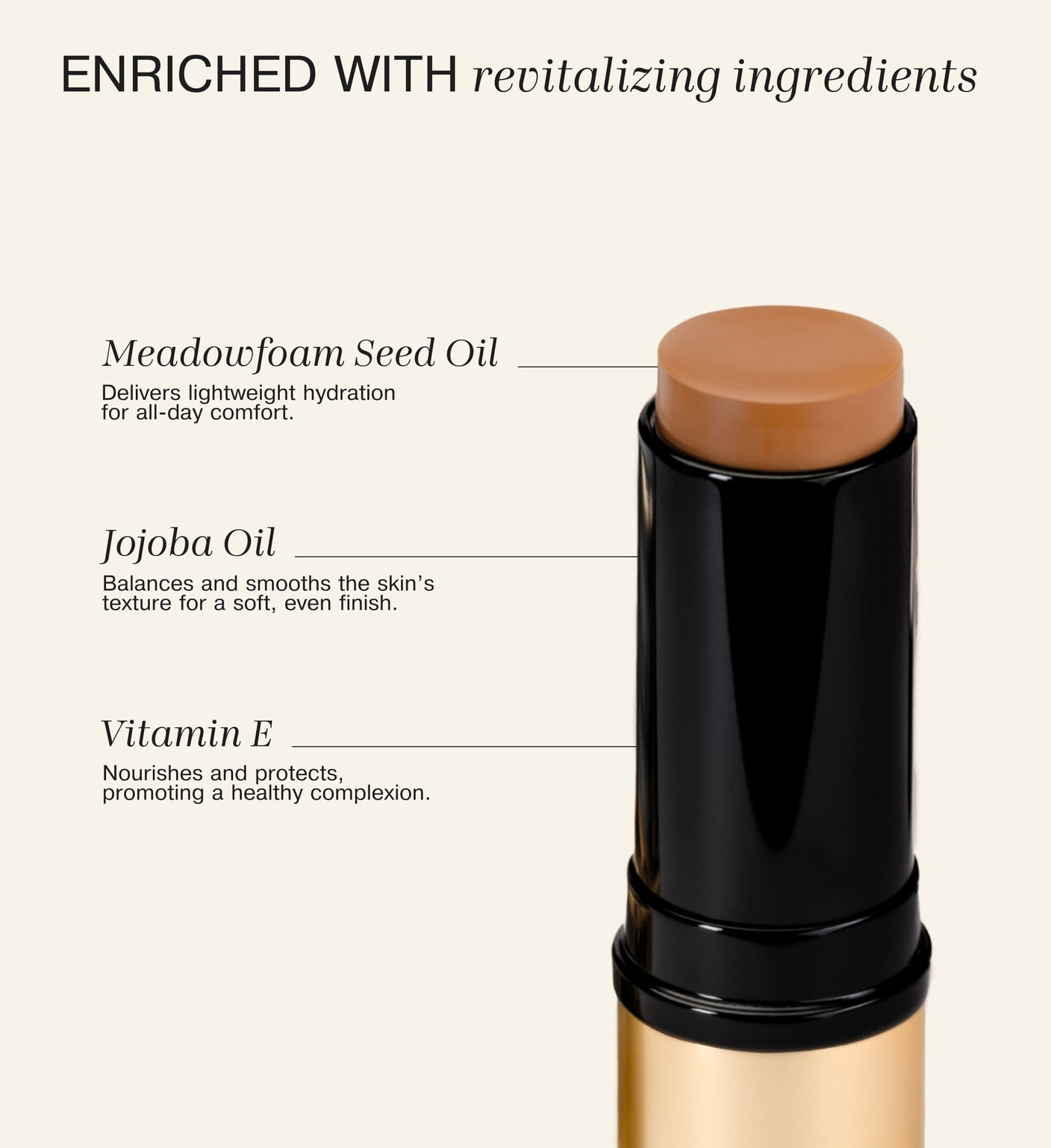 The Soft Tan Bronzer Stick is long-wearing and stays put all day. Its creamy, lightweight texture ensures a smooth application without fading or patchiness, keeping your glow intact from morning to night.